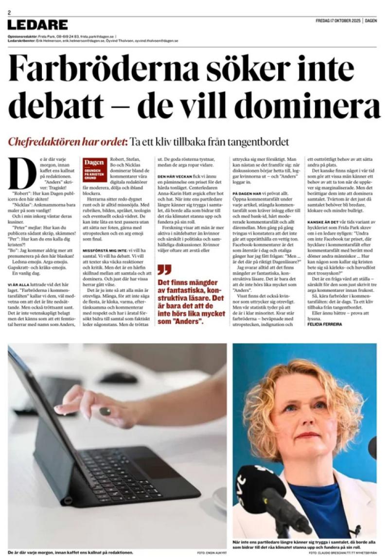 Var inte med och sprid hårdhet och hat! (Skärmdumpning Dagen).