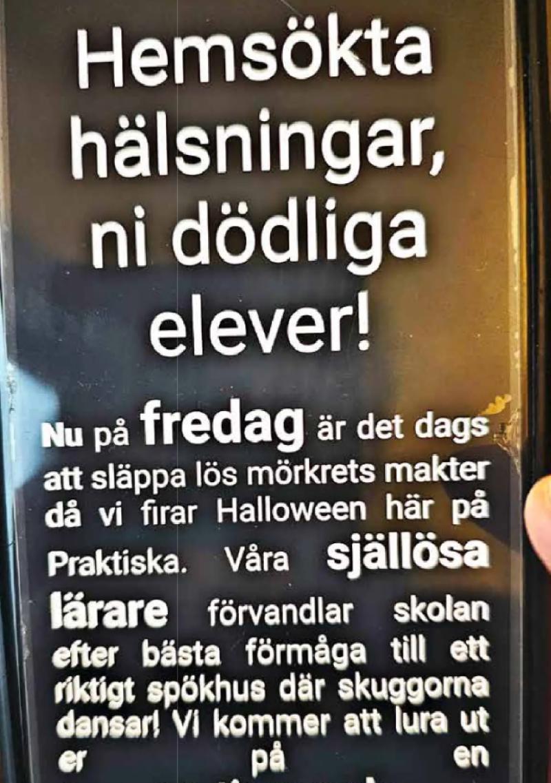 Svensk skola tycker det är dags att släppa lös mörkrets makter! (Bild Världen idag).