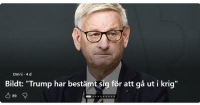 USA fortsätter att agera, igår vad det krismöte för att man tänker ta över Grönland. Idag kommer signalerna om att USA är berett att attacker Venezuela. På msnnytt kan man se vad Carl Bildt säger: Attackerna mot Venezuelas huvudstad Caracas innebär en krigsförklaring, enligt Sveriges före detta utrikesminister Carl Bildt. ”Trump har bestämt sig för att gå ut i krig”, skriver Bildt på X.” Se bild nedan.