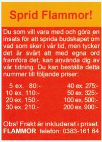 Men vi fortsätter att varna och vi önskar att alla ni som läser detta läser detta skall vara med och verka för ett uppvaknade – tänk så många som kan väckas då! Du behövs för vi når inte dem som Du kan nå. Tipsa om vår webbsida och beställ gärna hem ett antal Flammor för att sprida, det kan bli till uppvaknande och räddning för både Guds folk och de icke frälsta!