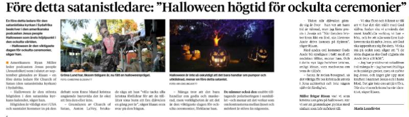 Den som har varit inne på djävulens område men bliv fri från det förstår vad det handlar om. I Världen idag publiceras en artikel, se skärmdumpningen längst ner. Texten lyder så här: Före detta satanistledare: ”Halloween högtid för ockulta ceremonier”