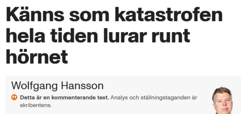 Vi kommer snart att få se vad som händer. Det är verkligen katastrofer som lurar runt hörnet som Wolfgang Hansson skriver i Aftonbladet, se bilden nedan. Snart är det bara sovande kristna som kan fortsätta sin verklighetsflykt – men dessa går inte att väcka med ord – men det kommer att vakna när det händer som så många varnar för.