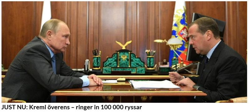 Häromdagen gick budet om att rusta 100 000 reservister, detta är en ovanlig åtgärd och detta skall ske redan i vinter, varför? (Se skärmdumpning från Oscarsson blogg längst ner.)