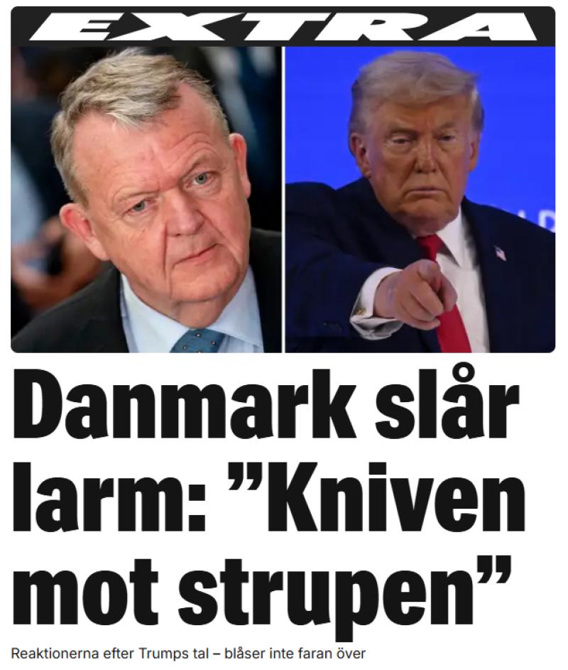 En som inte låter sig luras att faran skulle vara över angående Grönland är den danske utrikesministern Lars Lökke Rasmussen, det är en klarsynt politiker, se skärmdumpning längst ner från Expressen.